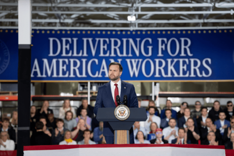 Addressing employees at Engineering Design Services Incorporated in Auburn Hills, Michigan, Vance framed the administration’s policies as efforts to rebuild domestic industries after years of factory closures and job losses.