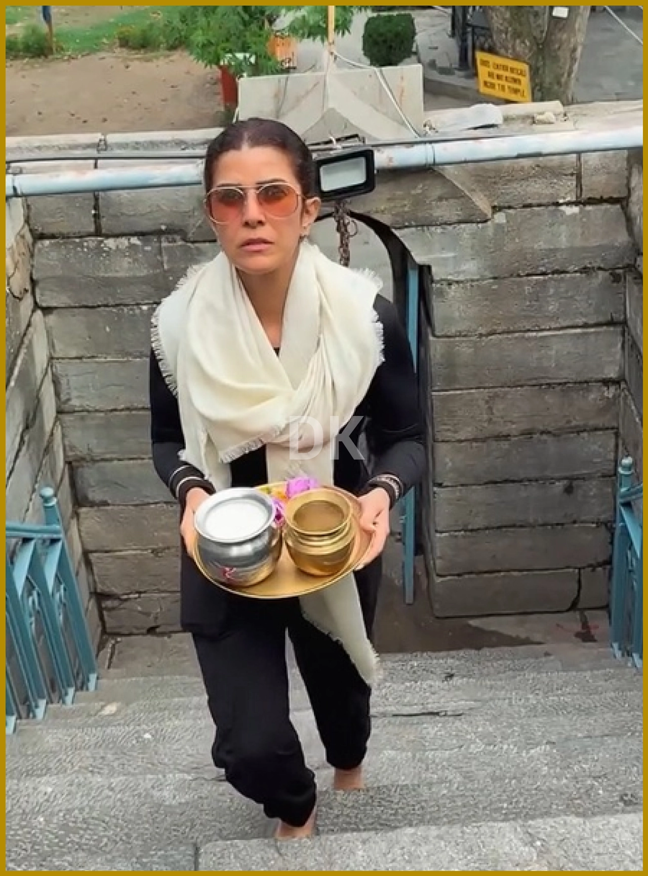 The video shows Nimrat Kaur in a simple and humble manner, offering prayers in front of Lord Shiva inside the temple. She appears to be deeply immersed in the moment.